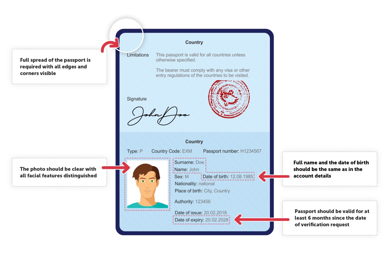 * The requirement 8 also applies to the clients who uploaded the same page of the passport to both verification levels. The requirement does not apply to the clients who submitted the page of the passport containing the residential address along with the main page (information page) of the passport. In case the main page of a passport is uploaded for the first level, the page confirming the residential address is enough to get the second-level verification status.