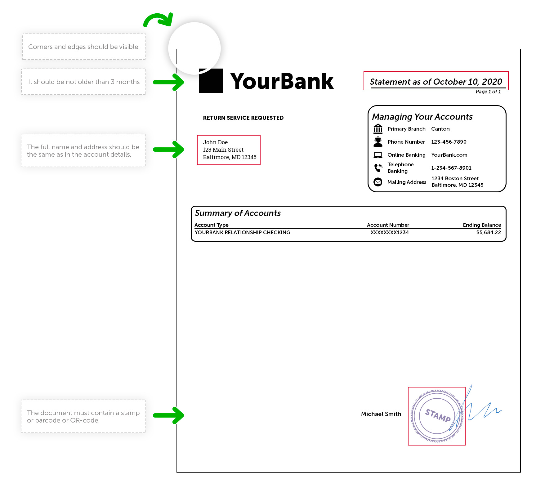 5. The name(s) on the account must be identical to the one(s) in the document.