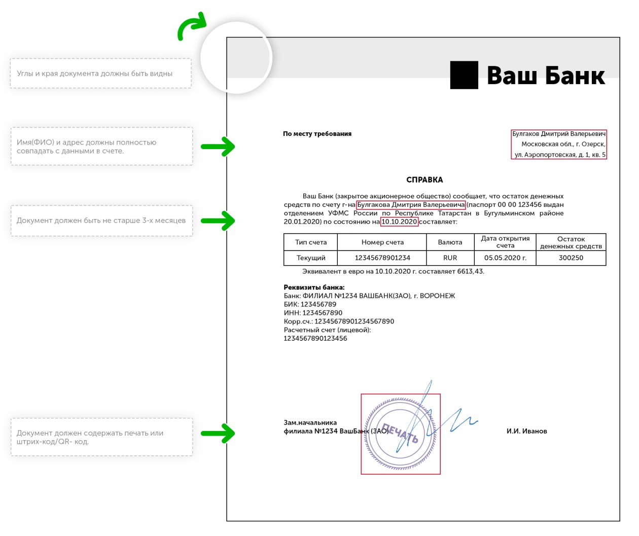 Ко всем документам, загружаемым для верификации счета, предъявляются следующие требования.